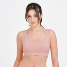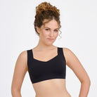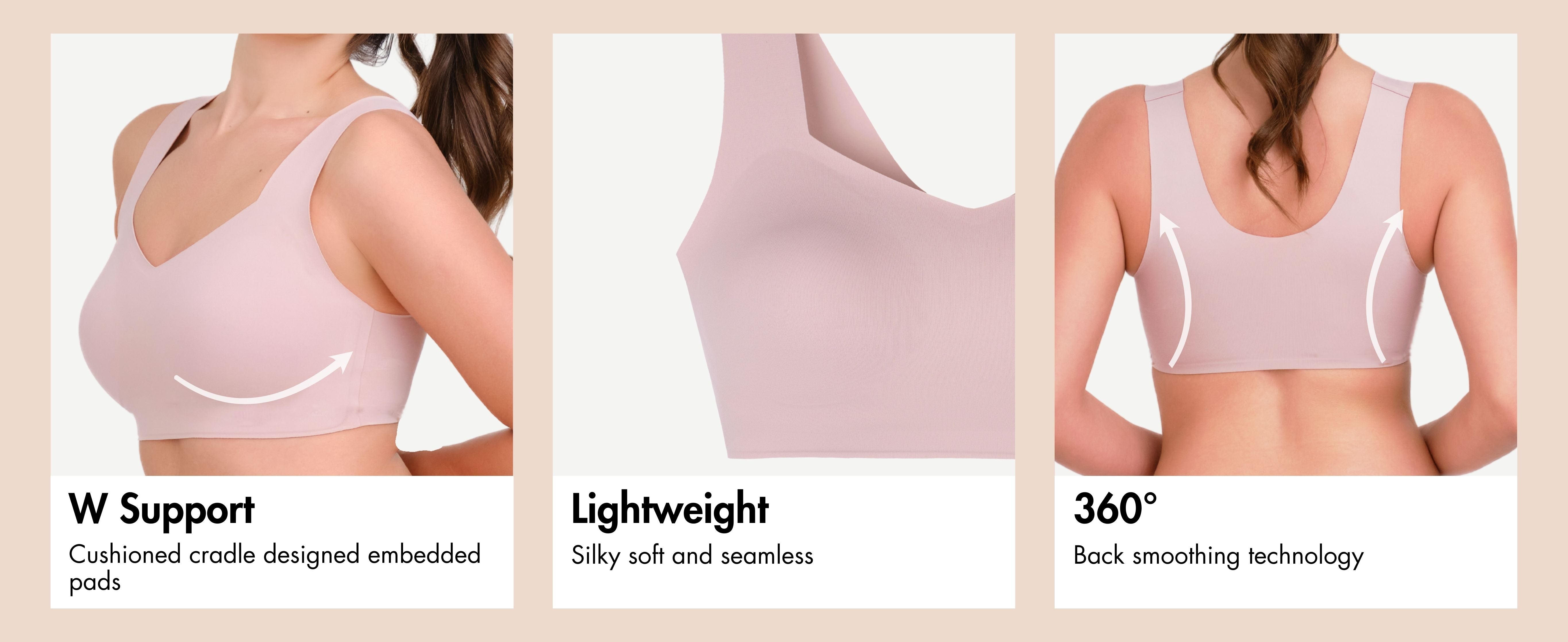 Give yourself a bust lifting supportive hug in silky smooth softness. Problem solving 360° back smoothing, armpit smoothing and side smoothing, all in one bra. Wire-free W support cushioned cradle keeps you lifted and supported. Seamless with free cut edges this bra pulls over with ease. No digging, no gaping and no cutting in for an easy and comfortable fit, a disappearing act under clothes, your T shirts never looked so good.